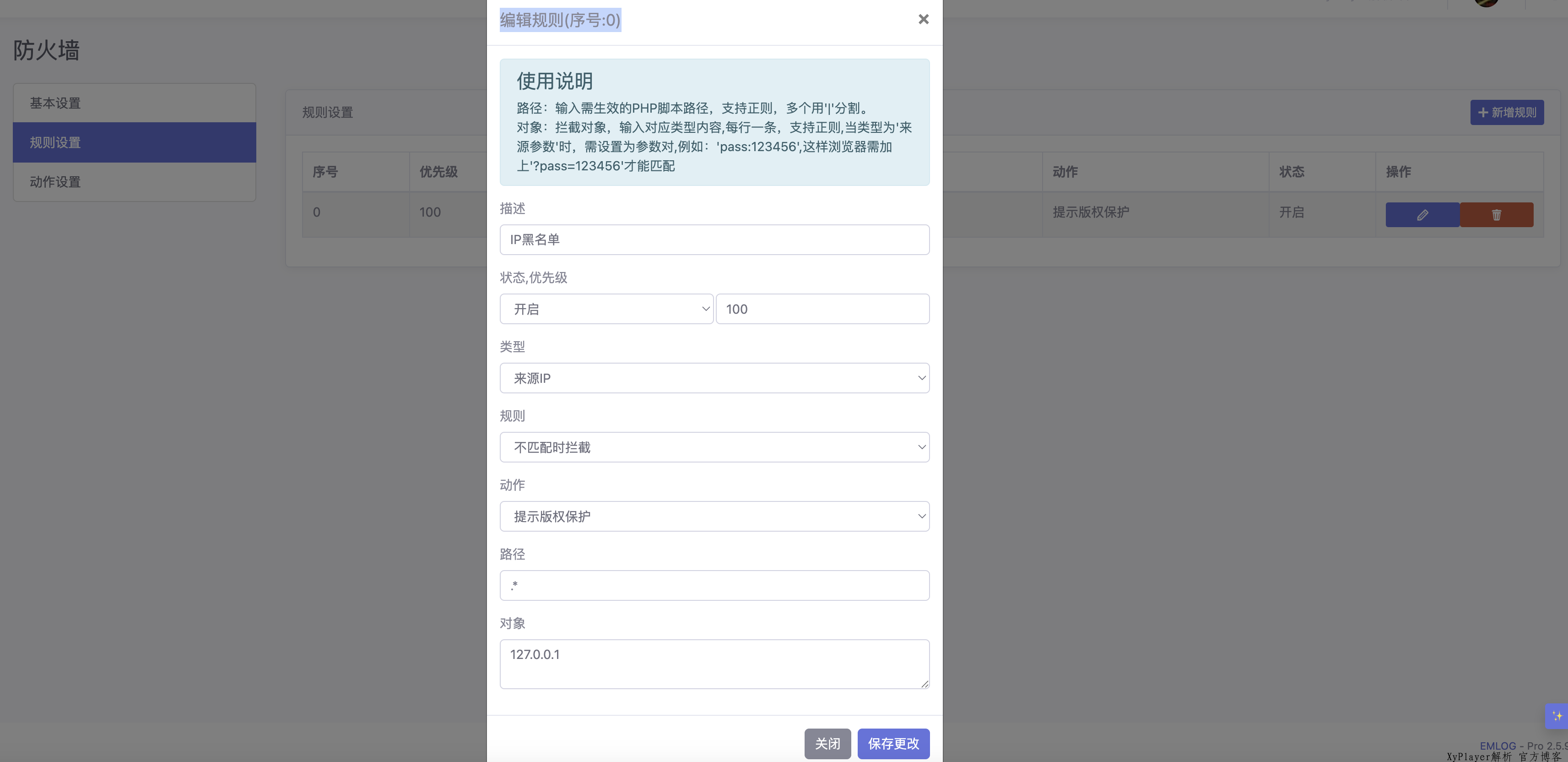 先添加动作,再添加规则,最后在基本设置里开启防火墙总开关即可,通过规则和动作的组合可以实现各种效果,敬请体验!